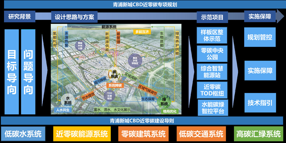 为落实上海市与青浦区的碳达峰目标,项目突破传统单一维度,创新构建“水-能-碳-绿”多系统耦合模型,以四大维度的协同来克服系统孤立的弊端,明确目标分解路径,统筹推进能源、建筑、交通等重点领域低碳转型,为实现城区近零碳运行提供关键技术支撑,打造具有地方特色的近零碳发展方案。