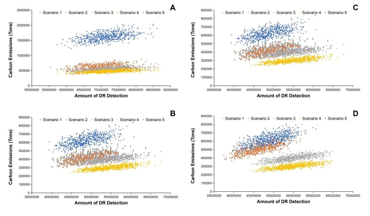 图3. 敏感性分析结果提示。AI筛查模式(S3和S4)碳减排效果稳定。